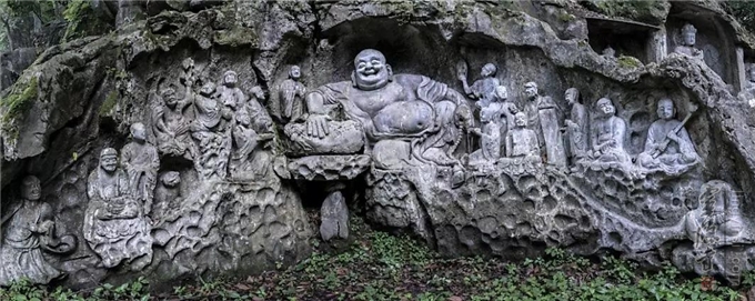 说起飞来峰造像,在中国古代造像艺术史上占有重要的地位。中国石窟造像艺术自3世纪发轫于新疆,历经千年发展,至元代,在杭州飞来峰迈向了终点。飞来峰造像以其为数之众多、样式之精美独特,堪称中国石窟造像艺术史上最后一抹光亮。中原地区的石窟艺术,从晚唐开始就走向了衰落,而飞来峰的五代、宋、元石刻造像正好弥补了这一缺环,特别是元代的造像,刀法洗练,线条流畅,在中国古代造像艺术史上占有非常重要的地位。