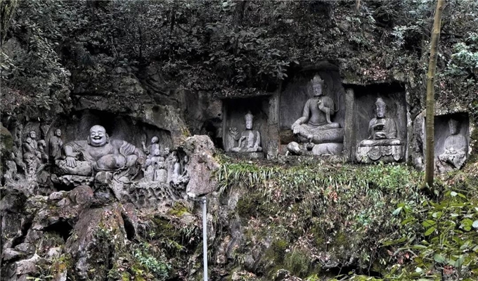 又据唐代陆羽《灵隐寺记》称:"有僧于岩上周围镌刻佛、菩萨、罗汉。"说明在唐代已经有常住于灵隐寺的僧人在参与飞来峰造像的工作。飞来峰造像与灵隐寺相邻,位于江南杭州,形成一种特殊的山、水、寺的佛教文化交融的独特氛围。甚至于文豪苏东坡在《留题灵隐寺方丈》中情不自禁发出如此感叹"溪山处处皆可庐,最爱灵隐飞来孤。"