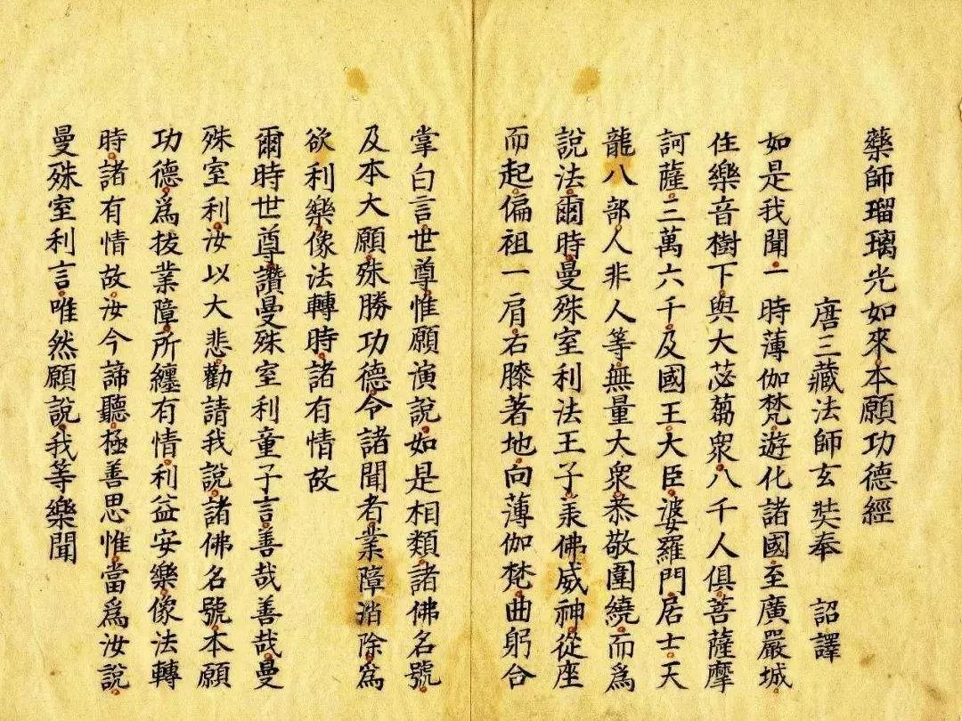 "愿我来世得菩提时,若诸有情,众病逼切,无救无归,无医无药,无亲无家,贫穷多苦。我之名号一经其耳,众病悉除,身心安乐,家属资具,悉皆丰足,乃至证得无上菩提。"