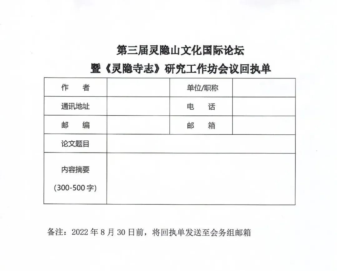 灵隐山,又名武林山、佛国山、天竺山、灵鹫山等,是一座历史悠久的文化名山。东晋咸和元年(326),高僧慧理于兹挂锡造寺,一千六百年来,高僧辈出,香火鼎盛,名士云集,文化繁盛;清嘉庆十四年(1809),浙江巡抚阮元于兹创办“灵隐书藏”,成为江南文化之盛事。为进一步推动灵隐山文化研究,加强灵隐山文化建设,深入挖掘灵隐山的文化内涵和历史地位,灵隐寺拟举办以“灵隐书藏”为主题的第三届灵隐山文化国际论坛暨《灵隐寺志》研究工作坊学术会议。