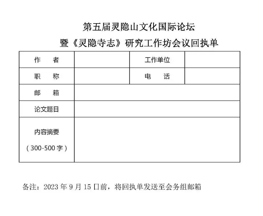 第五届灵隐山文化国际论坛暨《灵隐寺志》研究工作坊会议回执单