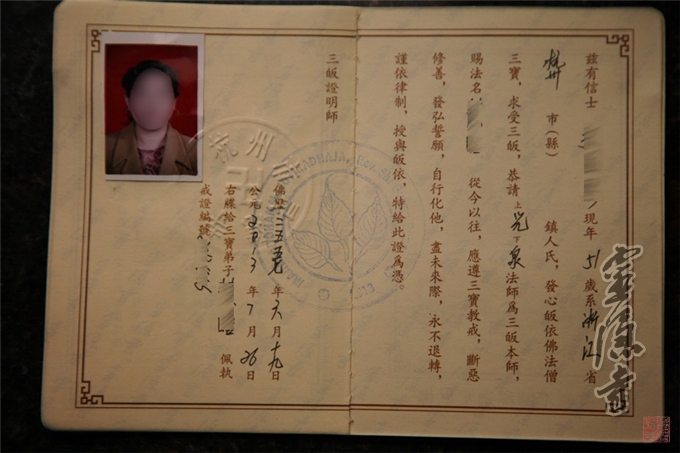 为了引领广大皈依佛子端正学佛与修行的态度,时时不忘佛陀教诲,更好地践行皈依三宝时所发的深弘誓愿,我寺将从2013年8月21日(农历七月十五)后,开始换发新的皈依证。新皈依证制作精致,美观大方,并加盖有钢印,更加正规、庄严。