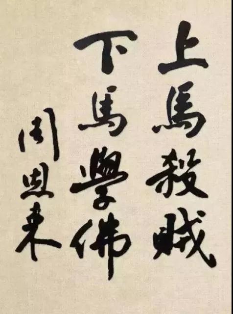 1939年春,巨赞法师在上封寺,见到了特地来南岳给正在举办的游击干部训练班作报告的周恩来和叶剑英。周恩来看了巨赞法师的《南岳佛道救难协会告各地救亡团体同志书》后,连声称赞道并当场挥毫写下"上马杀贼、下马学佛"8个大字题赠巨赞法师。