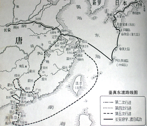 这年,出海的准备工作已经做好,但由于鉴真大师手下弟子们意见分歧,错过了时机。第二年十二月,大师第二次东渡,但出海不久,船只触礁受损,只好折回。第三次东渡,由于有人报告了官府,大师的东渡计划再次受阻。