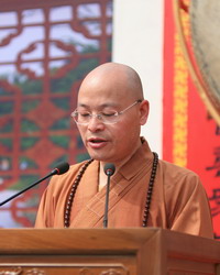 是日上午,座落在灵隐景区的杭州佛学院新校区,彩旗飘扬,鲜花簇拥,嘉宾云集,场面喜庆而热烈。杭州市佛教协会会长、杭州佛学院院长光泉法师致欢迎辞。他在致辞中回顾了杭州佛学院的创建历程和办学成果,并对杭州佛学院的未来发展作了展望。并表示要充分利用现有的办学条件,按照"学修一体化、学僧生活丛林化"的要求,坚持"学修为根本、学术为核心、艺术为特色"的办学理念,将杭州佛学院办成一所集僧才培养、艺术教育、学术研究、讲经说法、对外交流等融为一体的综合性佛学院,为我国佛教事业的健康发展作出应有的贡献。