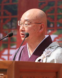 日本花园大学校长阿部浩三长老代表嘉宾致辞。花园大学具有禅学研究的传统,学术水平高,师资力量雄厚,在国际上具有一定影响。下午,杭州佛学院与日本花园大学还举行了"佛教研究法座谈会",双方就佛教研究方法等相关问题进行了深入探讨。