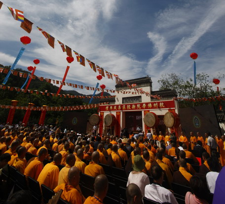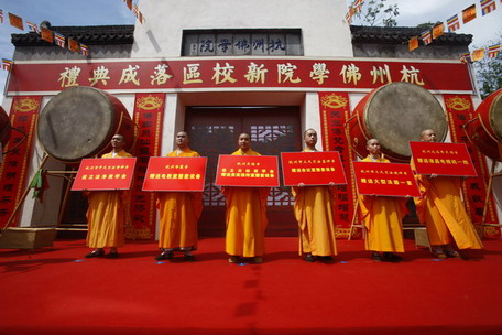 国家宗教局、省市和中佛协领导等分别在庆典上致辞,对杭州佛学院新校区的建设给予充分肯定,同时对佛学院建设提出了新的希望和要求。佛教教育是关乎佛教命运和走向的头等大事,是当前我国佛教事业建设和发展最紧迫、最重要的任务。杭州佛学院座落在国内外著名的灵隐佛教文化景区,建筑宏伟,设计新颖,集"佛教理论研究中心"、"佛教艺术教学中心"、"佛教文化交流中心"、"佛教旅游休闲中心"四大功能于一体,不仅是一座美丽的学院教育模式的佛教院校,也是一处景色秀丽的佛教文化旅游点,新校区的落成,标志着杭州佛学院的发展又迈出了新的一步。希望杭州佛学院发扬先贤古德的优良传统,坚持正确的办学宗旨和办学方向,发挥优势,办出特色,培养出一批有政治觉悟,有较高宗教学识,品德优秀的佛教僧才,将杭州佛学院打造成为全国佛教僧才培训基地,全国佛教艺术教育基地,全国汉传佛教讲经交流基地。