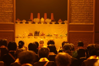 12月2日,四众弟子齐集大雄宝殿,举行庄严隆重的水陆法会送圣仪式。至此,持续七昼夜的"法界圣凡冥阳两利水陆普度大斋胜会",在大众的发愿回向声中功德圆满。