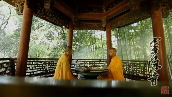 两僧对弈,一僧旁观,来去间听得时间流动,一盘棋何时接近末尾?只见两位法师双手合十,不多言语,恭敬有礼。无人论胜负,念及细节一二,只相互对笑。