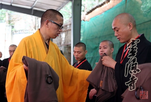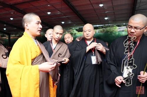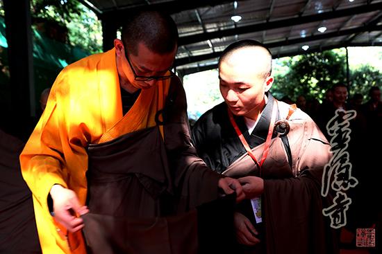 2013年10月4日,农历八月三十日,杭州灵隐寺癸巳年传授护国兴圣二部僧三坛大戒法会进入第九天,本日佛事活动是:搭衣、展具、拜愿。