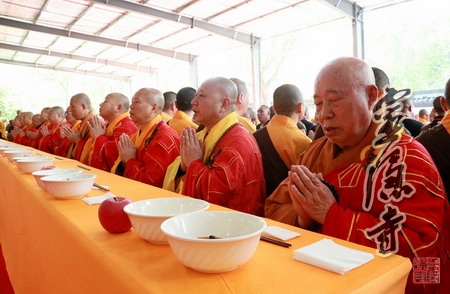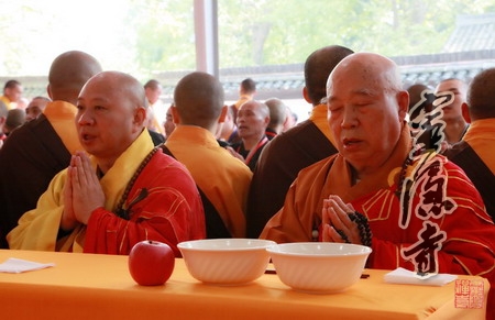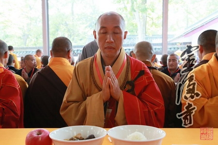 当天中午,设在三坛大戒教礼场的千僧斋会场,僧衣飘动,佛号庄严,威仪具足,法喜充满。参加2013汉传佛教讲经交流会的中佛协长老、讲经法师,参加癸巳年灵隐寺暨法镜寺三坛大戒法会的新戒大比丘,以及来自杭州佛教界的清净僧们,前来应供。