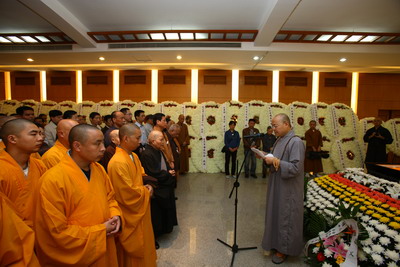 2011年10月13日(星期四)上午10 时(农历九月十七)在杭州殡仪馆7号中大厅举行遗体告别仪式,浙江省佛教界为其举行回向法会,我寺新方丈光泉大和尚亲致悼词,缅怀俞老一生为杭州佛教乃至浙江佛教所做的重大贡献,以下是光泉大和尚悼俞老全文: