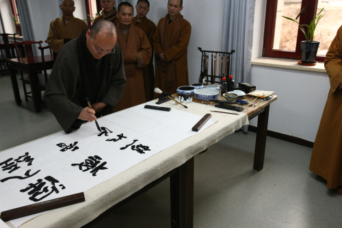 光泉法师现场为龙泉寺题写"深入经藏智慧入海"八字