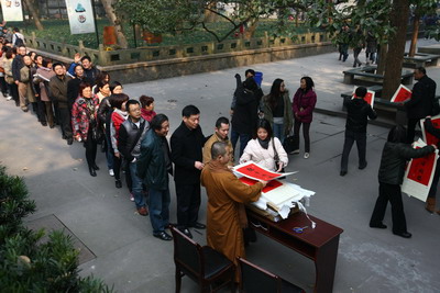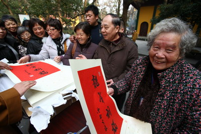 法会后,灵隐寺还现场向大众结缘赠送由光泉方丈亲笔题写的"龙年祈福"四字挂历,期望大家在龙年里都能沾上灵隐寺的佛气,受诸佛菩萨加持和保佑,万事如意,一切顺利。