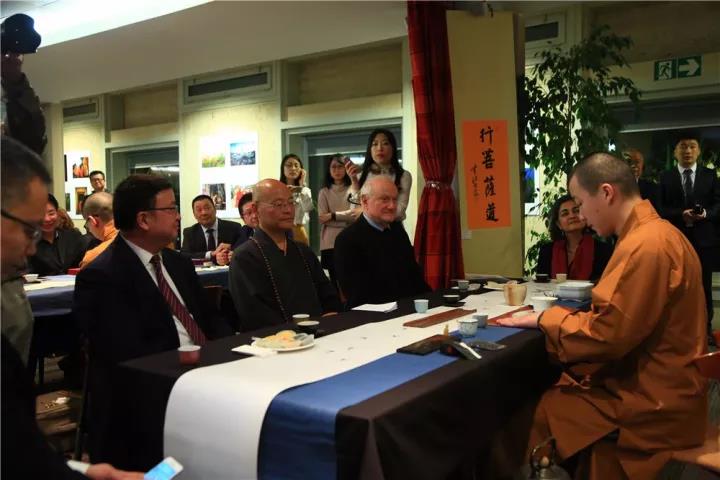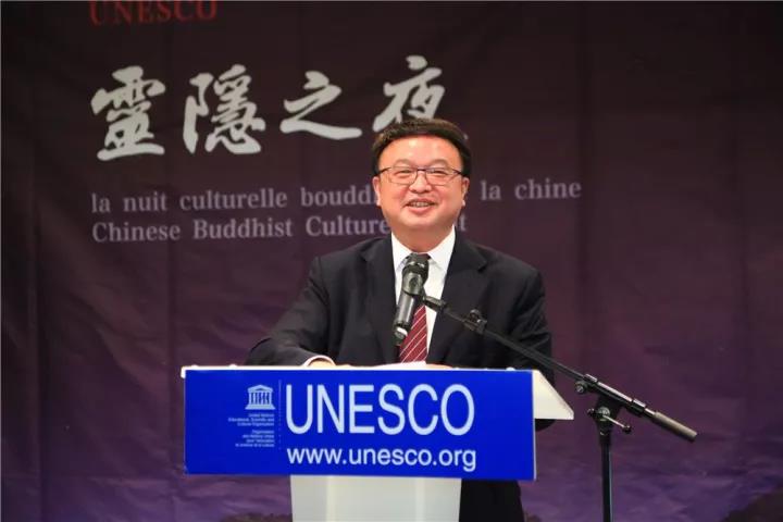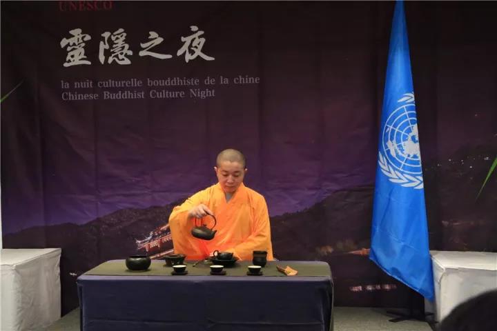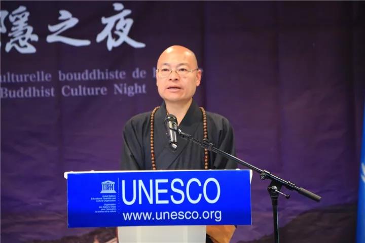 On November 20, 2017, the Vice Secretary General of The Buddhist Association of China, Chairman of The Buddhist Association of Hangzhou and Abbot of Lingyin Temple, Venerable Guangquan, visited the Headquarters of the United Nations Educational, Scientific and Cultural Organization (UNESCO) in Paris, France at the invitation of the Director-General of UNESCO Irina Bokova. At 7:30 pm (2:30 am Beijing Time) on November 21, the Chinese Buddhist Culture Night was officially launched at the Headquarters. Distinguished attendees included the Assistant Director-General for Culture of UNESCO Francesco Bandarin, the Ambassador and Permanent Delegate of the People’s Republic of China to UNESCO Shen Yang, the Executive Chairman of Association des Chinois Résidants en France (Association of Chinese Residents in France) Jin Linze, and over one hundred other Chinese and foreign guests.