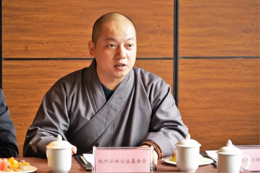 | The Deputy Executive Director of Hangzhou Yunlin Charitable Foundation Master Shengxian delivering a speech |