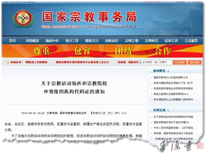 为了加强对宗教活动场所和宗教院校的管理,促进宗教活动场所和宗教院校健康发展,根据《组织机构代码管理办法》及相关要求,现就宗教活动场所和宗教院校申领中华人民共和国组织机构代码证(以下简称代码证)工作有关问题通知如下。