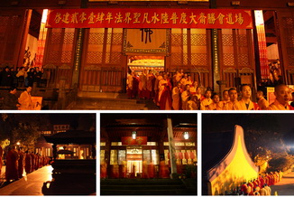 水陆法会主要是普渡水、陆、空六道众生,籍诸佛本愿功德,俾现在者消灾免难,增福延寿;祈已故者往生净土,早成佛道。胜会规模堪称是中国佛教中,仪式最隆重、最殊胜的大型佛事法会。法会历时七天,每天举行诵经、拜忏等佛事,为信众祈福消 灾、报恩超度历代先亡及累生父母。
