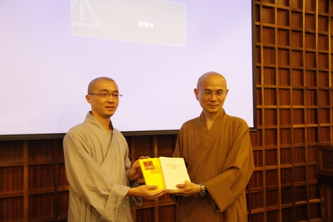 惠敏法师一行与杭州佛学院师生在会议室进行了深入交流。惠敏法师介绍了自己的人生经历、理想以及学佛感悟,并就佛学院师生提出的"在教学中,法鼓山是如何协调实修与教学工作的""如何对教师进行考评的""如何处理传统的宗教教育模式与现代化教育模式的"等等相关问题进行了详细的回答,介绍了法鼓山佛教学院的办学经验。法鼓图书资讯馆洪振洲馆长则介绍了法鼓山图书资讯馆的建设、成果,阐述了佛教图书馆资讯对佛教、佛学发展的重要意义与作用。