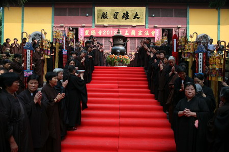 2012年8月29日至31日,灵隐寺隆重启建"2012灵隐寺盂兰盆法会"。三天法会期间,在大雄宝殿举行了诵经、施食、回向、传供、上供等佛事活动,每天晚上则施放瑜伽焰口,500余位护法居士参加此次法会,同沾法喜。