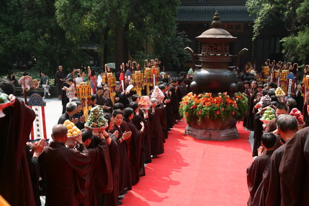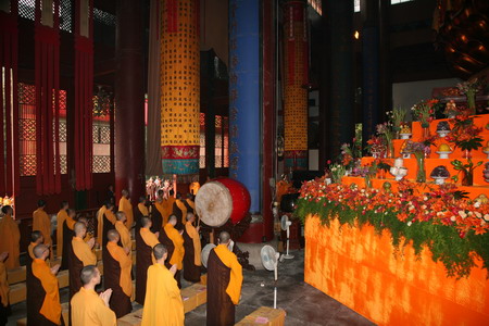 8月31日(农历七月十五),在大雄宝殿举行盛大的盂兰盆传供上供上供法会,由我寺方丈光泉大和尚和首座继云法师主法,以香花果品,百味饮食,虔心供养释迦牟尼及三世十方诸佛菩萨圣众,仗佛威神,为众生超荐历代宗亲,使之离苦得乐,同生净土。