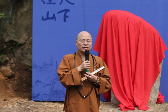Ven. Guangquan introduces the origin of the monument.