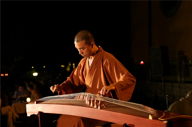 禅茶供佛之后,法师和居士们发心为现场嘉宾供养琴艺与管乐表演。在千年古刹灵隐寺,聆听这天籁般的古乐,所有的喧嚣与烦扰渐行渐远。