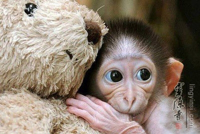 一只非常可爱的猴子牵出,据说那是专门食用的猴儿,头比较大。