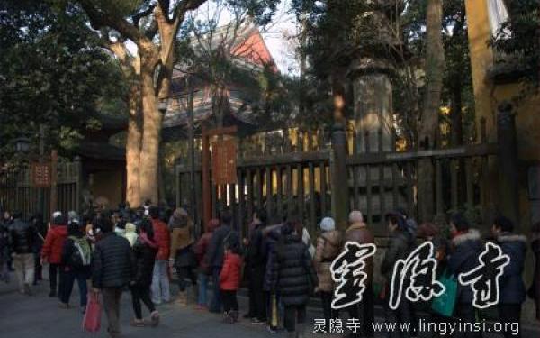 腊八当天,我寺免费开放,并现场向广大游人香客以及居士信众每人发放两份由师父和义工们亲手熬制的灵隐腊八粥。今年的寺内施粥活动,从凌晨五点半就开始了。长长的领粥队伍,从寺院进口一直延伸到图书馆西边的施粥点。一张张焦急渴望的脸上,充满着对热腾腾、香喷喷的灵隐腊八粥的期待,更充满着对佛法三宝加