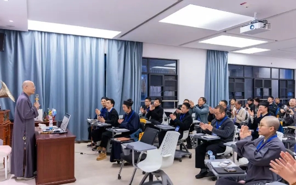 12月11日,浙江省佛教协会会长、杭州灵隐寺方丈光泉法师莅临浙江工商大学,为浙江省第二届宗教界“双通”人才研修班带来一场主题为《佛教中国化理论研究与思考》的精彩讲座,研修班50名学员齐聚聆听,共探佛教中国化的深邃内涵与时代意义。光泉法师以丰富详实的历史资料为脉络,深入溯源佛教起源及其在东传过程中的发展融合历程,深刻阐释佛教中国化不仅是历史演进的必然,更是契合当代社会现实需求的必由之路。在当代中国构建新型文明形态的宏大背景下,佛教亦需与时俱进,积极融入现代社会。理解并践行与社会主义社会相适应的理念,对推动佛教服务的现代化进程具有极为关键的积极作用。而当代佛教变革的核心要旨在于坚守信仰根基的同时,