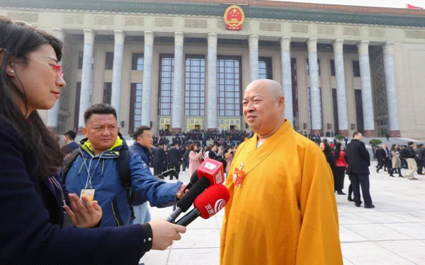 发布时间: 2019-03-04 | 来源: 海南省民宗处 3月3日下午,全国政协十三届二次会议在北京开幕。全国政协委员、中国佛教协会副会长、海南省佛教协会会长印顺法师在开幕式后接受了海南媒体的采访。 印顺法师接受采访时畅谈了感受:"每年政协开幕,我们都有新的期望,新的憧憬。我们怀着十分激动的心情来参加这次大会,激动孕育着春天的希望,和新的一年奋发向上的力量。希望通过这次会议,让我们得到生命的提升,把思想和行动统一起来,筑牢‘四个意识’,坚定‘四个自信’,坚决做好‘两个维护’。