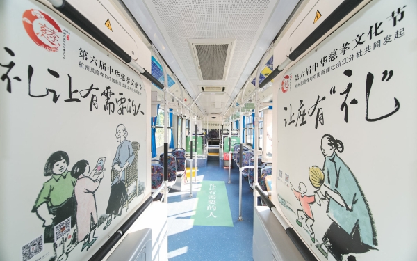 ▲”让慈孝穿行杭州”慈孝主题公交活动(往届活动照片) 从1922年开通至今,从火车站到灵隐寺,7路公交车已在杭州西子湖畔奔波了100个年头,成为新老杭州人的集体记忆。2022第八届中华慈孝文化节举办在即,为增加活动的亲民性以及影响力,让中华民族的慈孝文化更好地内化于人们心中,主办方联动7路车将于8月10日开展“让慈孝穿行杭州”慈孝主题公交活动,并配套设计了公交纪念车票。据悉,2022第八届中华慈孝文化节由中国新闻社、杭州灵隐寺主办。▲“慈孝公交”车身布置(往届活动照片)往年,“慈孝公交”车身用中国现代画家丰子恺的漫画布置,内容充满慈孝伦理之美。今年“慈孝公交”车身用知名漫画家蔡志忠创作的《游子