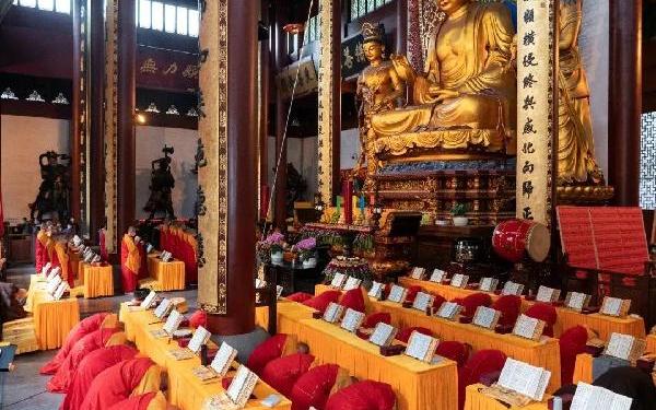 杭州灵隐寺辛丑年法界圣凡水陆普度大斋胜会2021年10月18日,农历九月十三,灵隐寺正式启建辛丑年法界圣凡水陆普度大斋胜会,为期一周,至农历九月十九观世音菩萨出家日(10月24日)圆满,伏愿世界和平,国泰民安,佛日增辉,法轮常转。10月22日,农历九月十七,灵隐寺辛丑水陆法会进入第五天,内坛举行告赦、上佛供、请下堂、授幽冥戒等法事。04:30 告赦凌晨4时30分,内坛告赦仪式开始。三位法师领众功德主依次拈香问讯,恭请捷疾持赦使者携赦书、赦牒,上启天庭,下通幽冥,向帝释天、阎王与土地等神祇陈情,望其下释拘紧,让六道中受苦困缚的众生能获赦通行,赴水陆胜会接受斋供、听闻佛法,藉此功德超荐群灵,解脱轮