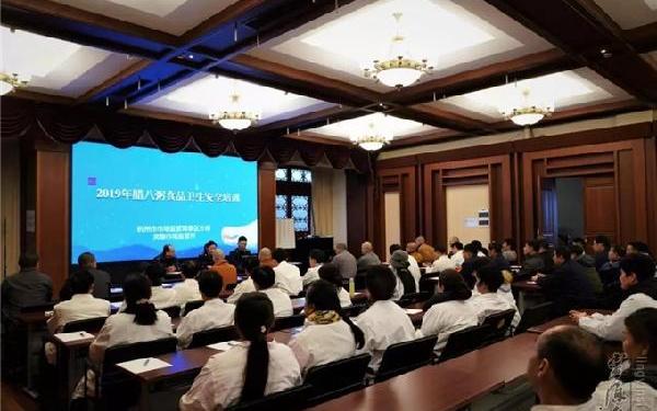 腊八节和元旦临近,为确保寺院腊八粥生产安全,规范腊八粥生产操作规程,2019年12月25日下午,杭州灵隐寺在华严阁举行2019腊八粥食品安全培训。来自灵隐景区七大佛教寺院的腊八粥生产管理人员和从业人员参加培训。 腊八粥食品安全培训邀请杭州市市场监管局景区分局灵隐市场监管所付所长仰芝娣,市场监督员李乐、王凯等,就寺院腊八粥食品安全管理体系建设、食品安全操作规范、元旦前食品安全应对策略等知识进行培训。培训内容丰富,重点突出,大家听了纷纷表示受益匪浅。 民以食为天,食以安为先。寺院熬制的腊八粥,大多公益派送,惠及人群多,涉及面广,食品安全绝不可掉以轻心。 腊八粥生产安全的主旨原则是什么?