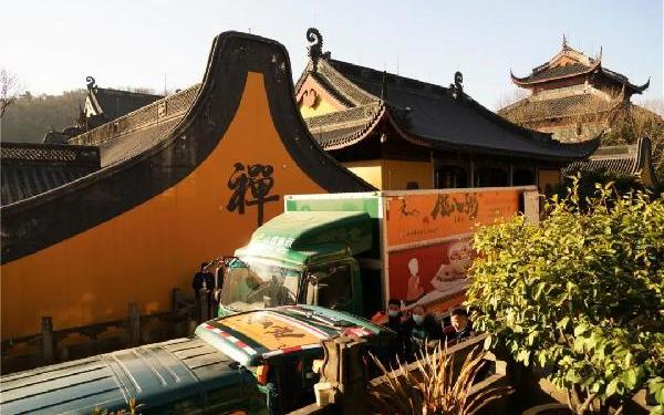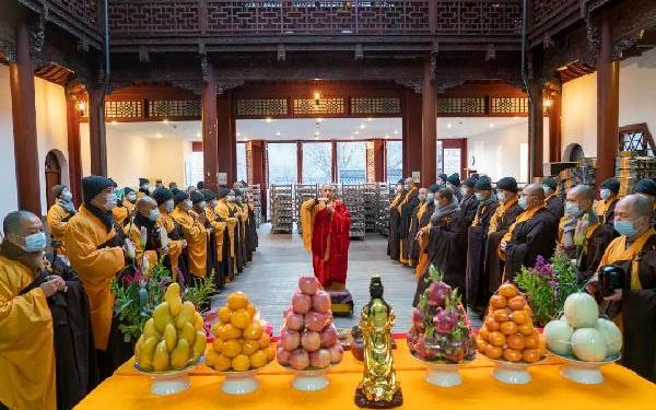 2021年1月20日,庚子年腊月初八,恭逢本师释迦牟尼佛成道纪念日,杭州灵隐寺谨依祖制于大雄宝殿祝圣,感恩释尊示现成道、说法度众,祈愿佛日增辉、法轮常转、疫情消遁、世界和平!香、花、灯、涂、果、茶、食、宝、珠、衣以及新鲜出锅的腊八粥等供品上供本师释迦牟尼佛及十方诸佛菩萨,佛号声声,梵音阵阵,虔诚肃穆,殊胜庄严。祝圣祈福,遵守疫情防控要求进行,控制参与人数,全程佩戴口罩、保持安全距离。为纪念本师释迦牟尼佛腊月初八于菩提树下成道,灵隐寺每年都举行腊八祝圣,并向民众施粥。今年为防控新冠疫情、避免人员聚集,灵隐寺不在寺院内施粥,改施粥为送粥。从1月13日至20日(腊月初一至初八),在中国邮政杭州分公司