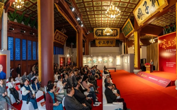 为赓续中华文脉、推动中华优秀传统文化创造性转化和创新性发展,4月29日,由中国文化艺术发展促进会指导、弘化社慈善基金会支持、中国古琴图书馆承办的“高山流水:李祥霆书画艺术展”浙江站巡展在杭州灵隐寺直指堂开幕。中国佛教协会副秘书长、浙江省佛教协会会长、杭州灵隐寺方丈光泉法师,浙江省非物质文化遗产保护协会会长、原浙江省文化和旅游厅副厅长叶菁,中国文化艺术发展促进会副主席兼秘书长王建国,北京皇家园林书画研究会顾问会长刘伯郎,弘化社慈善基金会会长蒋炎洲,浙江省音协古琴专业委员会会长徐君跃,古琴演奏家、李祥霆之女李蓬蓬等来自社会各界的嘉宾出席了本次活动。开幕式上,来自文化界、艺术界、音乐界的多位嘉宾,通