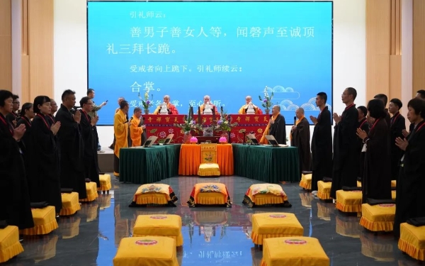 5月5日,杭州灵隐寺甲辰年传授五戒法会圆满。此次传戒为期5日,共有一百三十余名信众参加此次传授居士五戒法会,发心受持殊胜五戒,坚固法身慧命,祈愿早证菩提。▲受戒居士参加晚上忏摩▲常法法师教授礼仪规矩每日凌晨五点,众居士皆已穿戴整齐,身着海青,来到殿堂参加早课。梵呗阵阵,佛号声声,大家在唱诵与礼拜之中开启新的一天。居士们在常法法师的带领下,学习了海青与缦衣的穿脱抽搭、法会中的跪拜以及寺院生活中的行住坐卧。接下来的几天,大家都以此礼仪规矩要求自己,以至诚恭敬之心祈求三宝加持、龙天护佑,法界众生离苦得乐、同证菩提。每日药石后,灵隐寺安排各位居士参加忏摩共修活动。以忏摩因缘,引导大众真诚忏悔往昔罪业,