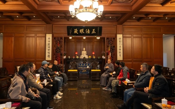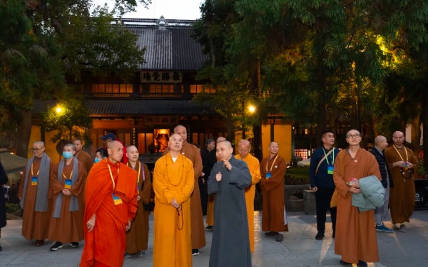 11月17日,参加第三届中美加佛教论坛的嘉宾一行参访杭州灵隐寺,并现场体验云林茶礼。来访嘉宾受到了灵隐寺方丈光泉大和尚的热情接待,先后参观了天王殿、大雄宝殿、药师殿,并于直指堂观看了“丝路花雨——佛教中国化书画摄影展”。众人对千年古刹的悠久历史有了更进一步的了解,对灵隐寺深厚的文化底蕴和弘法利生的种种努力表示由衷赞叹。当晚七时许,以“共生吉祥”为主题的云林茶会在灵隐寺大雄宝殿举行。来访嘉宾现场观摩了禅茶和插花供佛,伴随着传统民族乐器琴、箫、琵琶、尺八的丝竹管弦之声,感受着佛教与中国传统茶文化融合产生的“禅茶一味”意境。通过参观,嘉宾们切身体会到了千年古刹所蕴含的文化魅力,为汉传佛教丛林道场的特