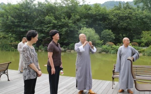 灵隐寺监院义广法师与省康复中心老师交谈
