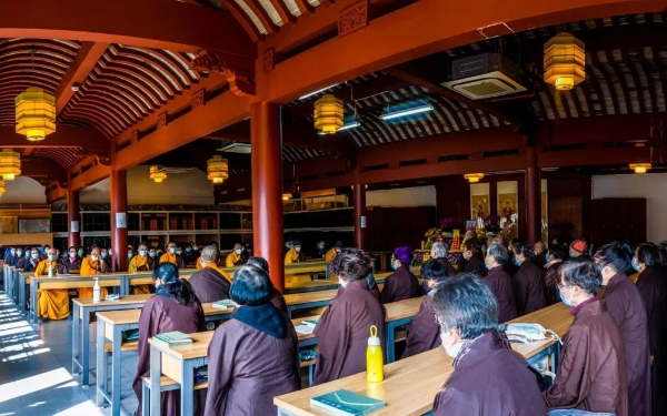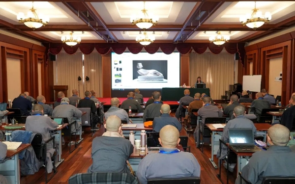 3月21日下午,由中国佛教协会主办、杭州市佛教协会协办、中国佛教讲经交流基地和杭州灵隐寺共同承办的“中国佛教讲经法师高级研习班”第六学期在杭州灵隐寺结课。3月2日至3月21日,来自全国20多个省、市、自治区的50位学员参加“中国佛教讲经法师高级研习班”第六学期学习。本学期邀请到来自北京大学、南京大学、国科大杭州高等研究院、浙江工业大学、华南师范大学、中国计量大学等机构的著名专家学者为学员们授课,课程包括时事政治、戒律、中国历史、口语传播、自然科学、写作等。“中国佛教讲经法师高级研习班”旨在彰显佛陀本怀,提升讲经法师整体素质,进一步巩固中国佛教讲经交流会成果,加强全国佛教界学习、研究、宣讲经典的