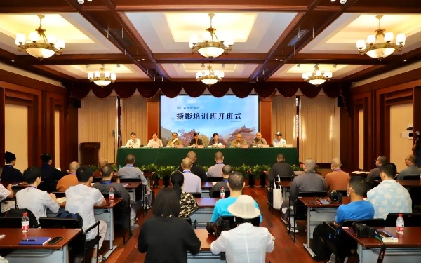 9月20日上午,由浙江省佛教协会与浙江省摄影家协会联合举办的省佛协2022年摄影培训班在杭州灵隐寺开班。浙江省民宗委党组成员、省委统战部民宗处处长毛秋红,浙江省摄影家协会主席王小川,浙江省民宗委宗教一处处长楼剑涛,浙江省佛教协会副会长、文化艺术委员会主任月真法师,浙江省佛教协会秘书长金幸祥,杭州灵隐寺监院智光法师,杭州市摄影家协会副主席、奥地利超级摄影巡回赛国际评委许坚,浙江省摄影家协会航拍专委会副秘书长张力出席开班式。▲奏唱国歌由全省各地佛教团体推荐的佛教宣传工作者、摄影爱好者等近40人参加培训班。开班式由月真法师主持。毛秋红肯定了近年来省佛协在宣传工作方面取得的成绩,并就如何通过学习摄影助