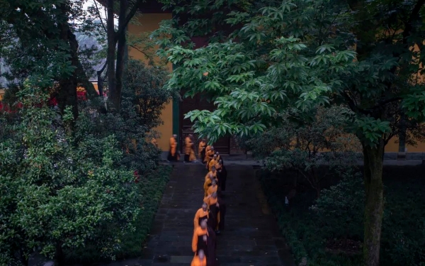弘法利生篇杭州灵隐寺僧众牢记出家人上求下化的宏愿和自利利他的初心,在坚持核心教义和仪轨制度的同时,契理契机地推进佛教中国化进程,将信仰落实于生活,将修行落实于当下,精益求精地圆满完成全年法务,引导广大信众正信正行。癸卯冬季禅七2023年12月15日,癸卯年农历冬月初四,杭州灵隐寺冬季禅七如期举行。当日下午,常住法师集合在祖师殿焚香礼祖,后在班首、维那师父的带领下至方丈室告生死假,光泉大和尚慈悲开示。晚上18时,光泉大和尚在般若堂宣说起七法语,随着一声“起”字号令,冬季禅七正式开始。冬至上供礼祖2023年12月22日,农历冬月初十,适逢癸卯年冬至之日,杭州灵隐寺举行上供礼祖佛事,缅怀历代祖师法乳