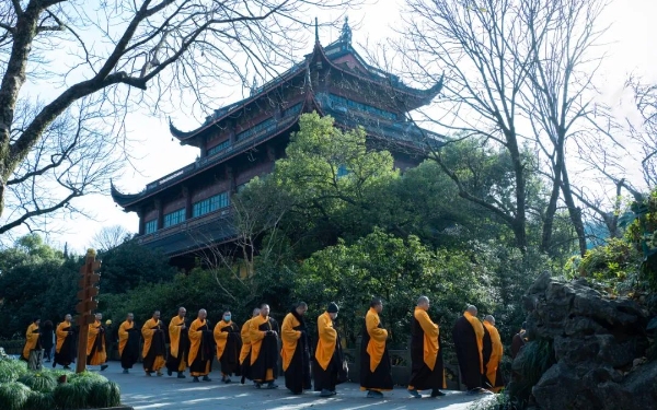 岁序更替,华章日新。我们告别成绩斐然的2024,迎来了充满希望的2025。过去一年中,杭州灵隐寺在党和政府的领导下,深入学习贯彻党的二十大和二十届三中全会精神,坚持佛教中国化方向,积极拓展佛教与社会主义社会相适应的广度与深度,真抓实干,锐意进取,在寺院管理、僧才培养、讲经弘法、文化润教、公益慈善等方面取得了丰硕成果,为浙江高质量发展建设共同富裕示范区贡献了佛教的独特智慧。爱国爱教篇杭州灵隐寺高举爱国爱教伟大旗帜,在佛教中国化的时代新路上,不断提高政治站位,增强“五个认同”,牢固树立国家意识、法治意识、公民意识,更好地团结和凝聚广大信教群众,为强国建设、民族复兴作出新贡献。浙江省宗教界人士202
