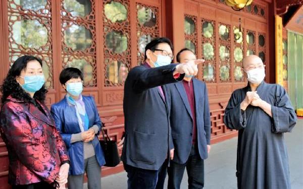 3月19日,杭州市人大常委会党组副书记、副主任张建庭带队到杭州灵隐寺等地调研宗教场所疫情防控相关情况,收集并帮助解决实际问题。 在听取了灵隐寺方丈光泉法师关于疫情防控工作的汇报后,张建庭充分肯定了灵隐寺在抗击疫情中所作的积极贡献。张建庭认为,面对疫情,灵隐寺认识深、决心强、行动快、举措实、效果好,在杭州宗教界发挥了表率作用。张建庭说,疫情发生以来,杭州市宗教界把信教群众紧密团结在了党和政府周围,同心协力、共克时艰,体现了宗教界的社会担当。 张建庭指出,目前疫情犹在,杭州市宗教界要认真学习贯彻习近平总书记关于疫情防控工作的一系列重要讲话精神,要针对当前疫情防控形势