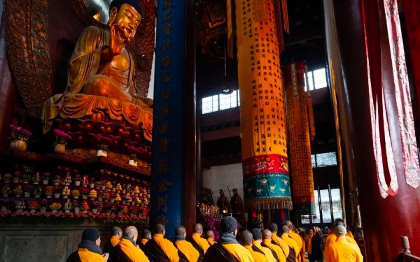 1月7日,甲辰腊月初八,适逢释迦牟尼佛成道纪念日,杭州灵隐寺依照佛教传统,举行甲辰腊八节讲经、传供祈福法会,祈愿雨顺风调,国泰民安,佛道长隆,正法久住。▲心印法师于药师殿讲经上午十点,传供祈福法会开始,光泉大和尚和智光法师、自愚法师共同主法,四众弟子严整排班,依次传供,谨以香花灯涂茶果珍馐,上酬本师慈荫,所冀法身常住、佛日增辉,一切有情悟无生忍!此食色香味 上供十方佛中奉诸圣贤 下及六道品等施无差别 随愿皆饱满令今施者得 无量波罗蜜杭州灵隐寺在腊八当日举行供佛、讲经、施粥等一系列节日活动,上承周秦腊祭习俗遗绪,下启唐宋江南地区腊八节习俗之先,集宗教信仰与世俗观念于一体,是我国腊八节习俗的杰出代