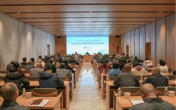为深入推进“学法规、守戒律、重修为、树形象”教育活动,落实全面从严治教的要求,进一步规范杭州佛教各级团体、场所财务工作,提升团体、场所财务负责人、财务专职工作人员的业务水平,并对新颁布、新修订的财务、税务制度进行针对性辅导,3月17日至18日,2026年杭州佛教财务专项培训班在杭州国际佛教文化交流中心圆满举行。市佛协班子成员,各区县(市)佛协会长、秘书长,市属各寺院、杭州佛学院财务负责人、财务工作人员等80余人参加培训班。市民宗局宗教处处长舒修明、市佛协会长月真法师出席开班仪式并讲话。开班仪式由市佛协常务副会长戒兴法师主持。月真法师在开班动员讲话中指出,此次财务专项培训班的举办既是杭州佛教界加