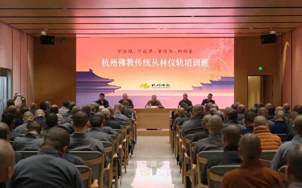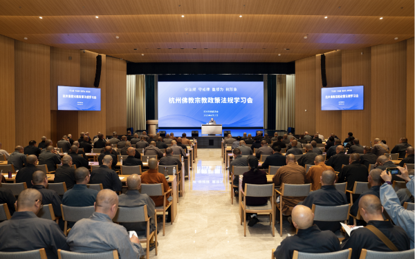 为深入推进“学法规、守戒律、重修为、树形象”教育活动,全面落实从严治教要求,强化全市佛教界法治意识与规范管理水平,4月17日,“杭州佛教宗教政策法规学习会”在杭州国际佛教文化交流中心隆重举行。全市佛教团体班子成员、市属各寺院及佛学院执事、会本部全体工作人员参加学习。市佛教协会会长月真法师作动员讲话。月真法师在动员讲话中指出,本次学习会是全市佛教界“学法规、守戒律、重修为、树形象”教育活动从动员部署转向学习教育、查摆问题的关键环节,是推进佛教中国化杭州实践、落实全面从严治教的重要举措。月真法师结合杭州佛教工作实际提出三点要求:一是提高政治站位,深刻认识学法规的重大意义。要深化对全市佛教界的思想政