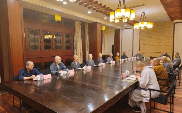 5月7日晚,由中国佛教协会主办,浙江省佛教协会、江苏省佛教协会和中国佛教讲经交流基地协办的中国佛教讲经交流会讲经法师代表2024巡讲活动在杭州灵隐寺举办行前座谈会。浙江省佛教协会会长、中国佛教讲经交流基地主任光泉法师,中国佛教协会教务部主任、中国佛教讲经交流基地副主任长顺法师,浙江省佛教协会秘书长金幸祥,浙江省佛教协会教务部副主任同润法师和来自各地的讲经法师代表及中国佛教讲经交流基地工作人员共同参加本次座谈会。浙江省佛教协会秘书长金幸祥代表浙江省佛教协会向各位法师的到来表示热烈欢迎。他表示,希望各位法师运用自身的学修积累和对经典的深入理解,为浙江佛教讲经法师作出榜样,通过发挥讲经说法带头引领作
