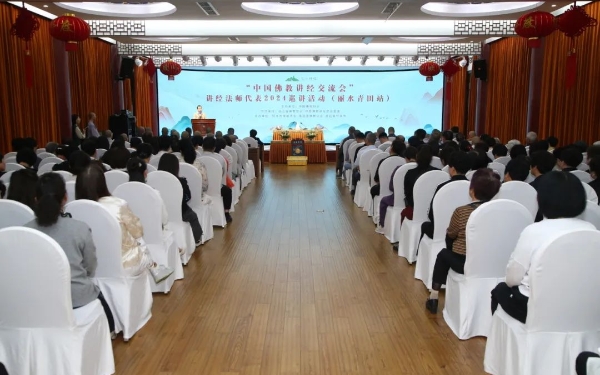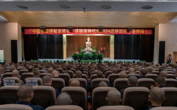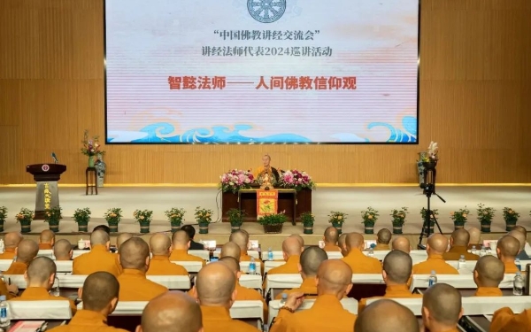 5月11日,中国佛教讲经交流会讲经法师代表2024巡讲活动(南京站)在中国佛学院栖霞山分院吉藏大讲堂举行。本次活动由中国佛教协会主办,江苏省佛教协会、中国佛教讲经交流基地协办,南京市佛教协会、中国佛学院栖霞山分院、南京栖霞寺承办。中国佛教协会教务部主任、中国佛教讲经交流基地副主任长顺法师,中国佛教协会教务部悟一法师,南京市民宗局副局长马凯,南京市委统战部民宗处处长严德嵘,江苏省佛教协会常务副会长隆相法师,江苏省佛教协会驻会副会长大初法师,南京市佛教协会会长传静法师,南京市佛教协会副会长曙光法师,南京市佛教协会驻会副会长理海法师,中国佛学院栖霞山分院、江苏尼众佛学院师生,各区佛协法师、居士代表共