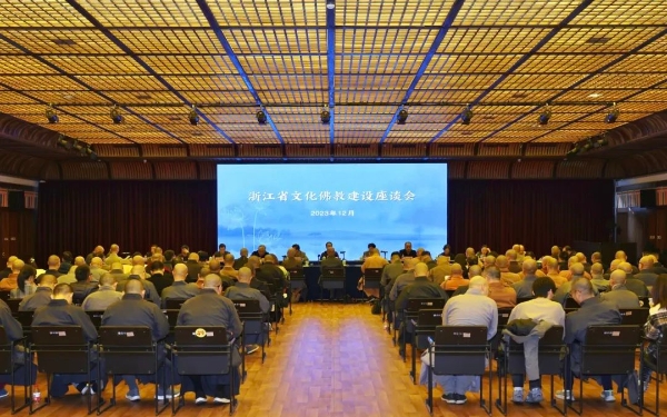 12月8日下午,浙江省佛教协会在杭州佛学院召开“浙江省文化佛教建设座谈会”。浙江省政协副主席、党组副书记王昌荣,浙江省委统战部副部长、省民宗委主任鲍秀英出席会议并讲话。浙江省政协常委、民宗委主任楼炳文,浙江省民宗委党组成员、副主任钟新章等参加会议。会议由浙江省佛教协会会长光泉法师主持。▲光泉法师主持会议并介绍浙江佛教文化建设情况光泉法师介绍了浙江省佛教协会近年来在打造文化品牌、开展文化活动、推动经典阐释、注重人才培养、开展对外交流等方面工作的特色亮点,并表示,浙江省佛教协会将以习近平总书记在文化传承发展座谈会上的讲话精神为指导,致力于擦亮文化佛教建设的品牌,强化文化佛教建设的人才支撑,增进文化
